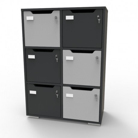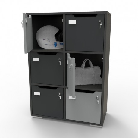 • Casier à clé graphite CASEO avec 6 cases qui fonctionne parfaitement pour des entreprises et des espaces de coworking