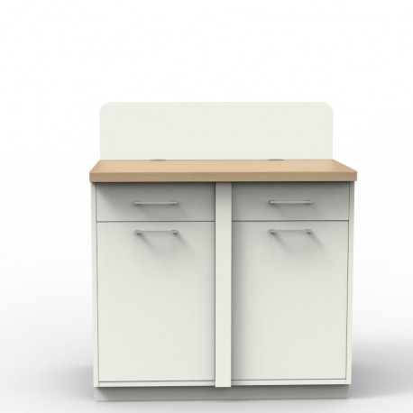 Meuble pour machine à café professionnelle corps de meuble coloris graphite ou blanc composé d’ 1 grand plan de travail disponible en 3 coloris blanc, chêne, ou wengé.
