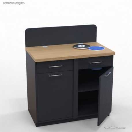 Meuble pour machine à café professionnelle en bois avec poubelle basculante de 8L et rangement intérieur. Meuble café avec serrure en option, idéal pour aménager un coin café en entreprise, collectivité, association, hôtel, coworking...