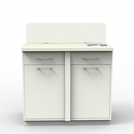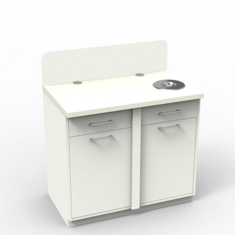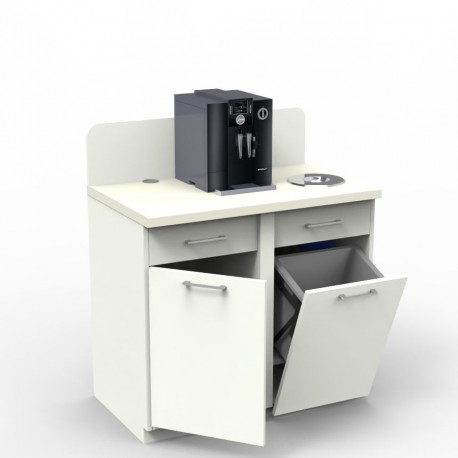 •  	Meuble pause café blanc avec deux poubelles permettant une gestion des déchets optimale dans salle de pause