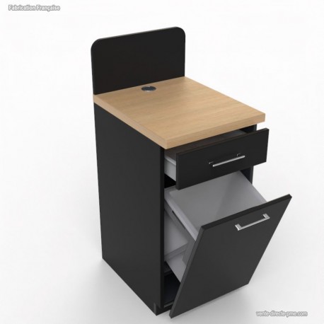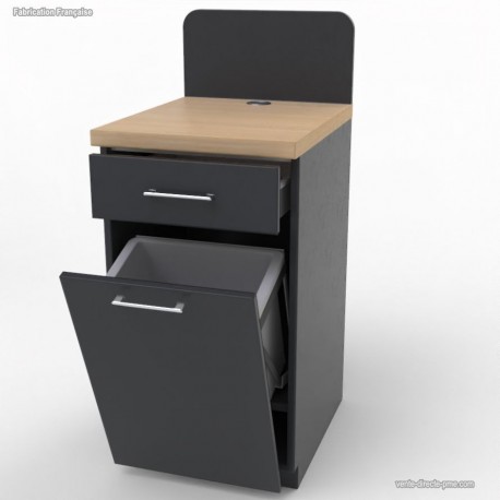 Meuble avec poubelle inclinable intégrée, pratique et discret pour une gestion des déchets simplifiée.