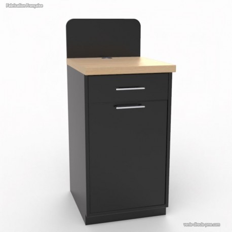 Petit meuble pour machine à café avec poubelle basculante aux dimensions de H1145mm x L500mm x P600mm, pour optimiser un petit espace café professionnel.