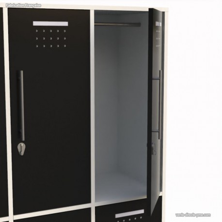 - Casier vestiaire en bois graphite ou blanc de 2 colonnes + 4 portes de 30 cm chacune